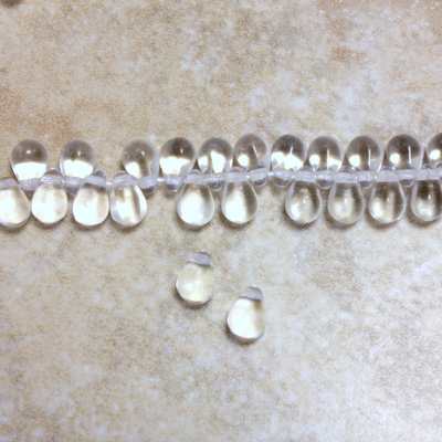 Czech Pressed Glass Pendant - Smooth Drop 6x4MM CRYSTAL