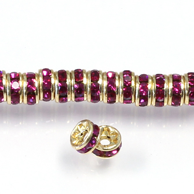 Czech Rhinestone Rondelle - Round 05MM FUCHSIA-GOLD