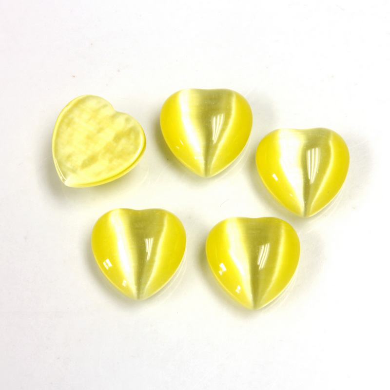 Fiber-Optic Flat Back Cabochon - Heart 10MM CAT'S EYE YELLOW