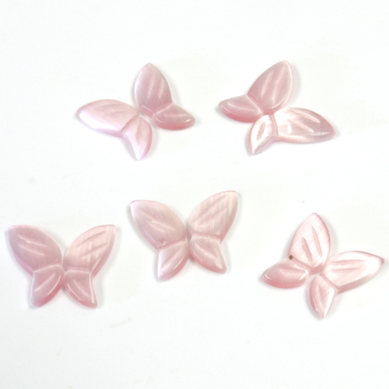 These synthetic cats eye fiber optic stones are carved in the shape of a pair of matching butterfly wings. Sold as equal sets of left and right facing pairs, these are used in classic jewelry designs and craft projects. Also available in other sizes and styles