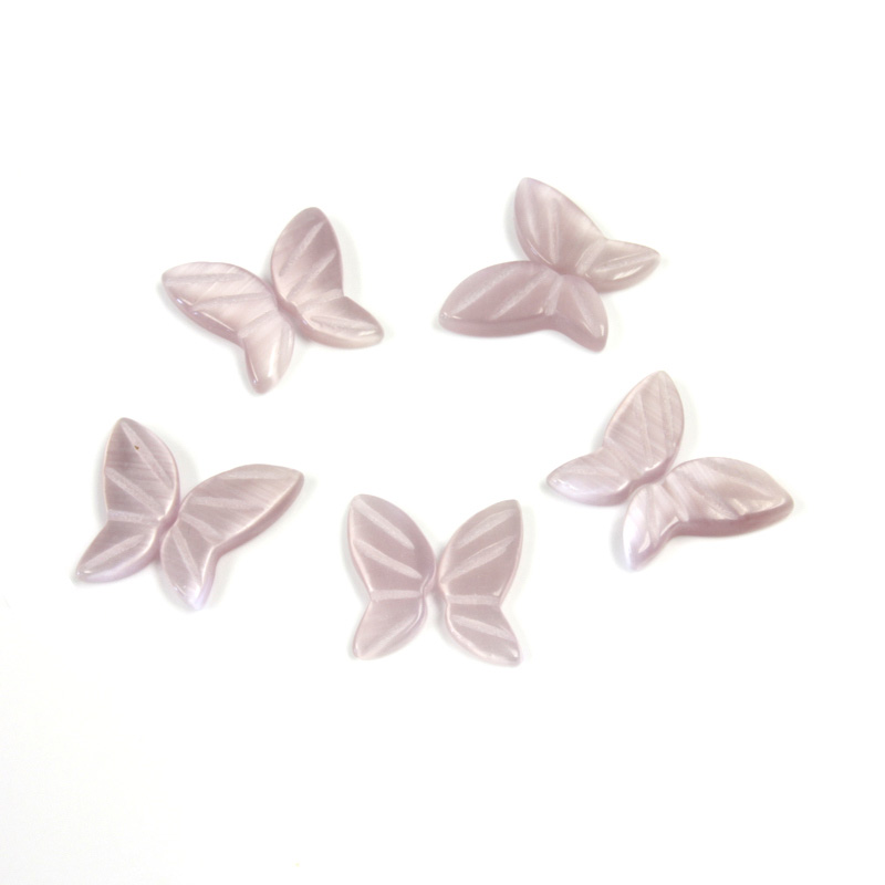 These synthetic cats eye fiber optic stones are carved in the shape of a pair of matching butterfly wings. Sold as equal sets of left and right facing pairs, these are used in classic jewelry designs and craft projects. Also available in other sizes and styles