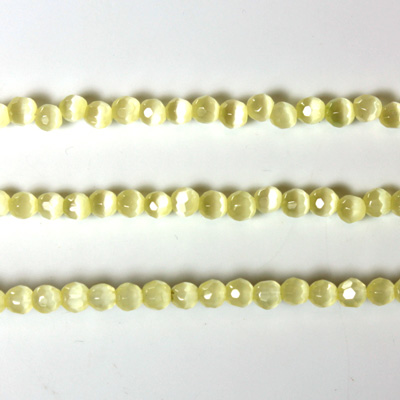 Fiber Optic Synthetic Cat's Eye Bead - Round Faceted 03MM CAT'S EYE YELLOW