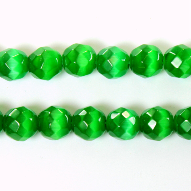 Fiber Optic Synthetic Cat's Eye Bead - Round Faceted 08MM CAT'S EYE GREEN