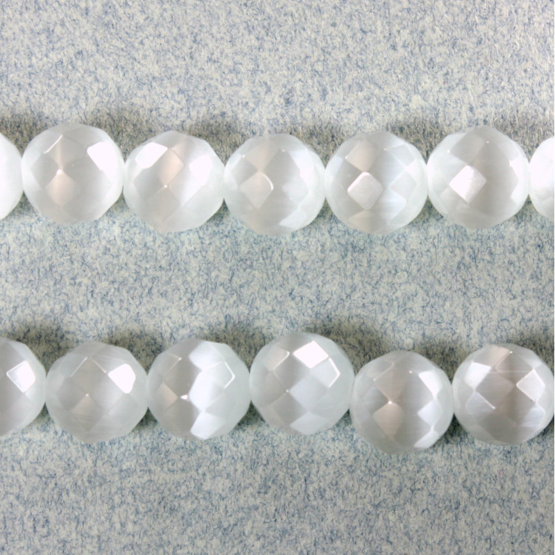 Fiber Optic Synthetic Cat's Eye Bead - Round Faceted 08MM CAT'S EYE WHITE