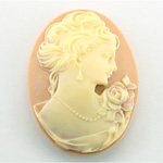 Plastic Cameo - Woman with Necklace (R) Oval 40x30MM CREAM ON TAN