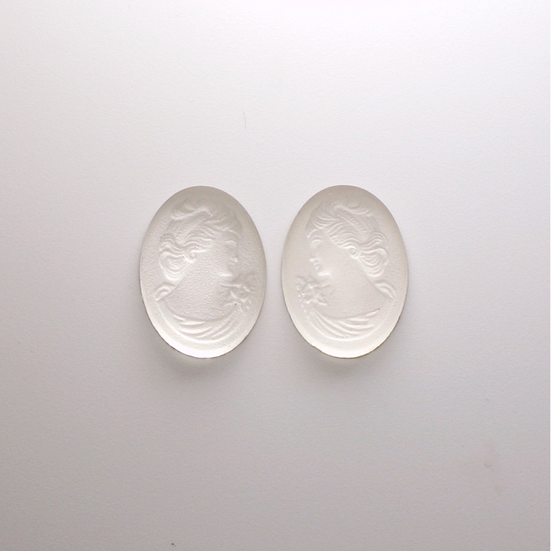 Made in Germany, these glass cameos are hand crafted from vintaqe tools and feature amazing detail on a matte finish transparent, foiled base.