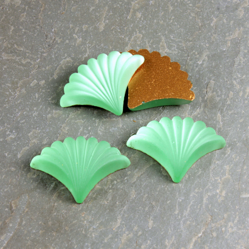 Glass Cabochon - Fan/Shell Shape 19x14MM MATTE PERIDOT Foiled