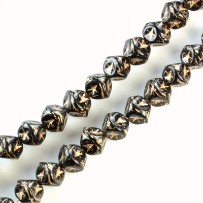 Glass Engraved Cube Bead - GOLD/JET 07MM