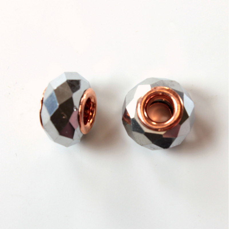Glass Faceted Bead with Large Hole Copper Plated Center - Round 14x9MM GUNMETAL COATED
