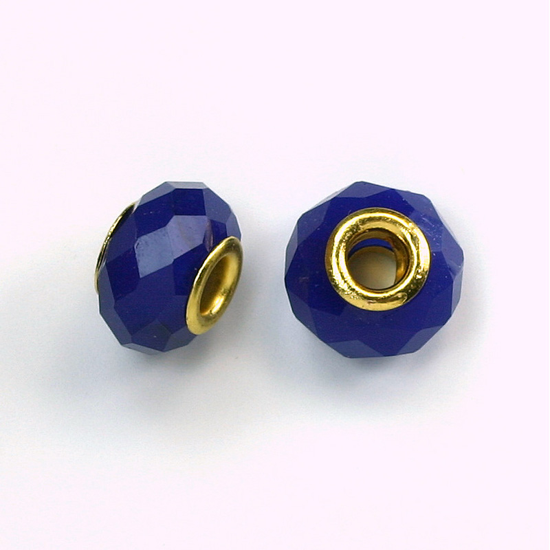 Glass Faceted Bead with Large Hole Gold Plated Center - Round 14x9MM SAPPHIRE