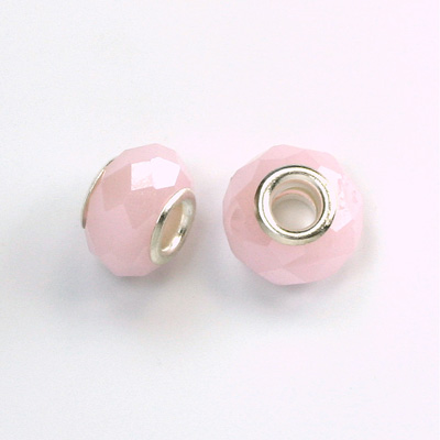 Glass Faceted Bead with Large Hole Silver Plated Center - Round 14x9MM OPAL ROSE
