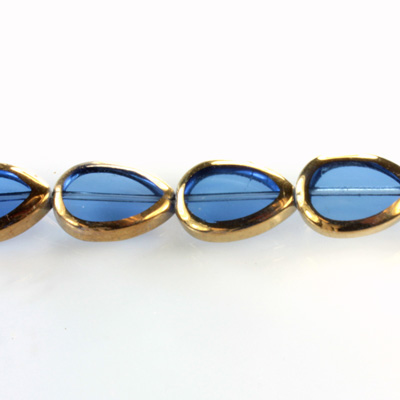 Glass Fire Polished Table Cut Window Bead - Pear 18x12MM MONTANA with METALLIC COATING