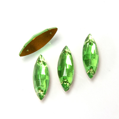Glass Flat Back 2-Hole Sew-On Stone - Navette 14x5MM PERIDOT