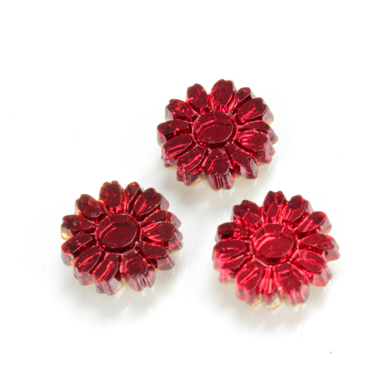 Glass Flat Back Foiled Mirror - Daisy 10MM RUBY