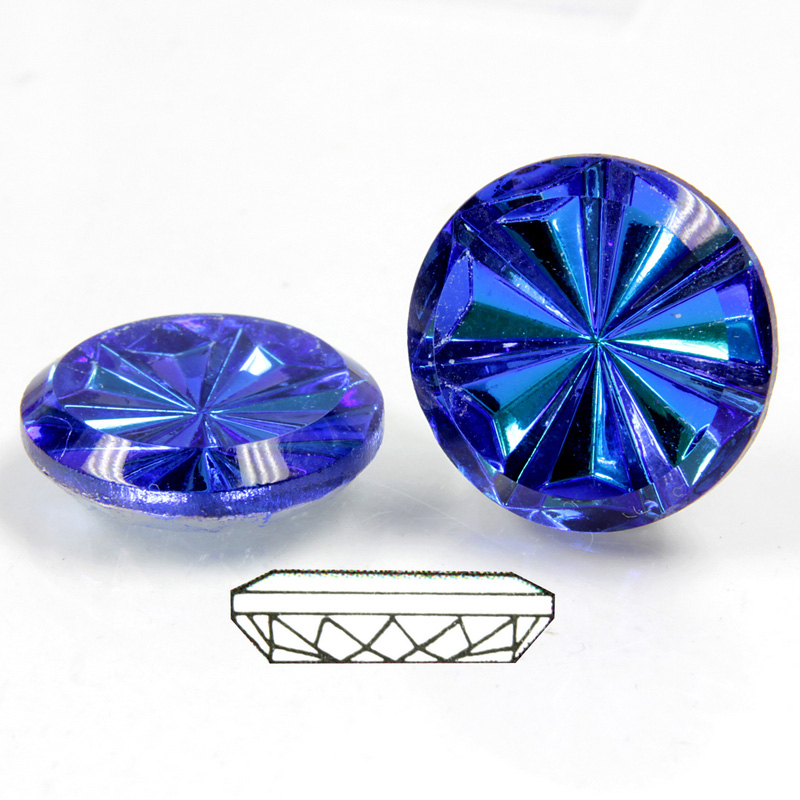 These round vintage style Pinwheel stones are created by skilled makers in Germany by heating glass, then hand pressing it into molds. The top table is then polished and the result is this beautiful and unique stone.