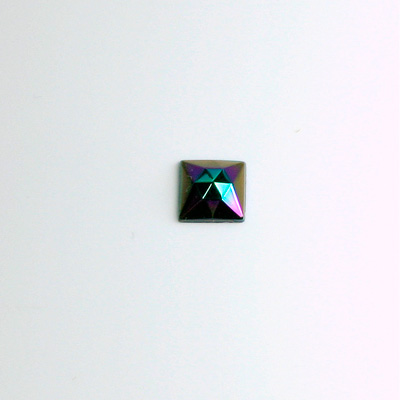 Glass Flat Back Rauten Rose Stone - Square 06x6MM IRIS GREEN Coated