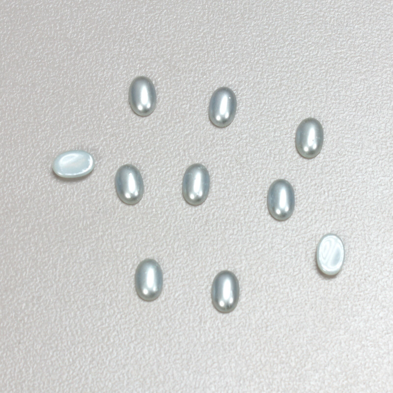 These small glass cabochons are too small for dipping, so a pearl finish is sprayed onto a lead-free alabaster glass base. Please note, pearl coatings can be affected by some types of chemicals and cosmetics.