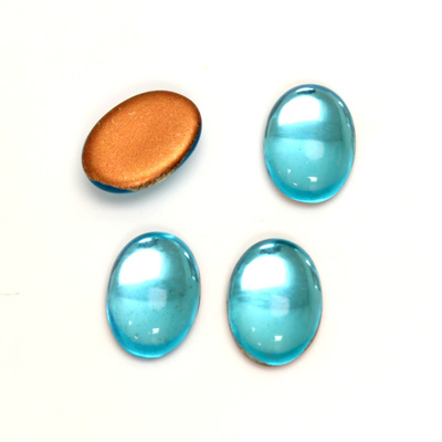 Glass Medium Dome Foiled Cabochon - Oval 14x10MM AQUA