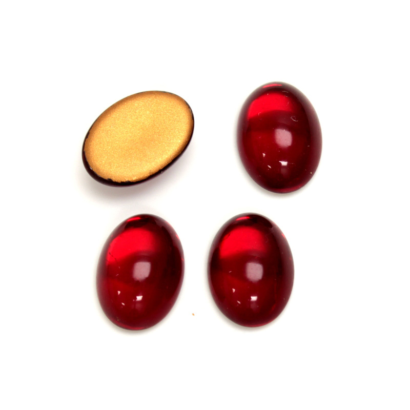 Glass Medium Dome Foiled Cabochon - Oval 14x10MM RUBY