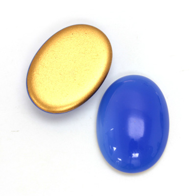 Glass Medium Dome Foiled Cabochon - Oval 25x18MM OPAL BLUE