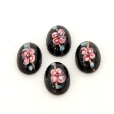 These lampwork glass cabochons are hand made and pressed with the same skills and techniques used for generations in the Czech glass lampwork industry. Each stone is a work of art as artisans mix the molten glass colors to create an inlay flower design within each stone. Available in a range of color combinations in Round and Oval shapes. Check out our line of inlay flower beads as well.