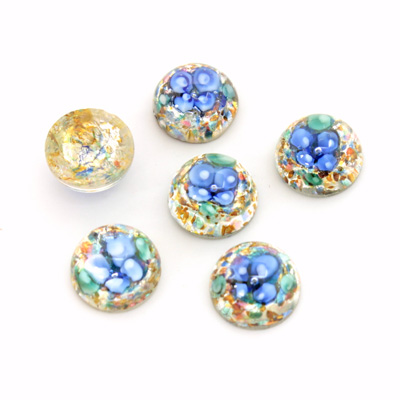These lampwork glass cabochons are hand made and pressed with the same skills and techniques used for generations in the Czech glass lampwork industry. Each stone is a work of art as artisans mix the molten glass colors to create an inlay flower design within each stone. Available in a range of color combinations in Round and Oval shapes. Check out our line of inlay flower beads as well.