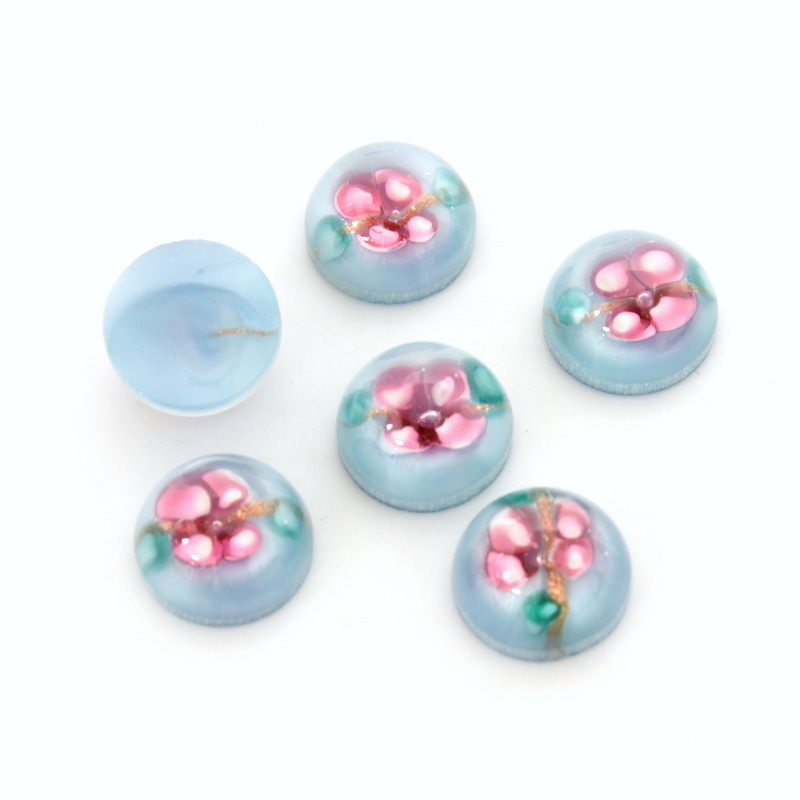 Glass Medium Dome Lampwork Cabochon - Round 10MM PINK ON AQUA (04866)