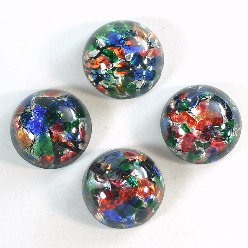 Glass Medium Dome Lampwork Cabochon - Round 15MM BLACK MULTI OPAL (04460)
