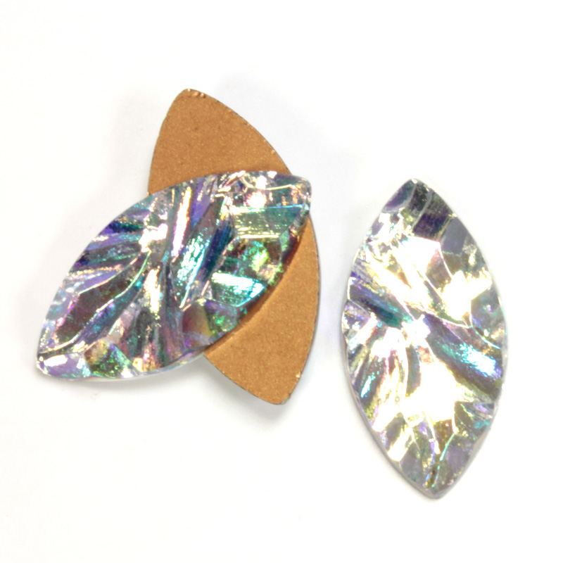 Glass Nugget Top Foiled Cabochon - Navette 27x13MM CRYSTAL AB