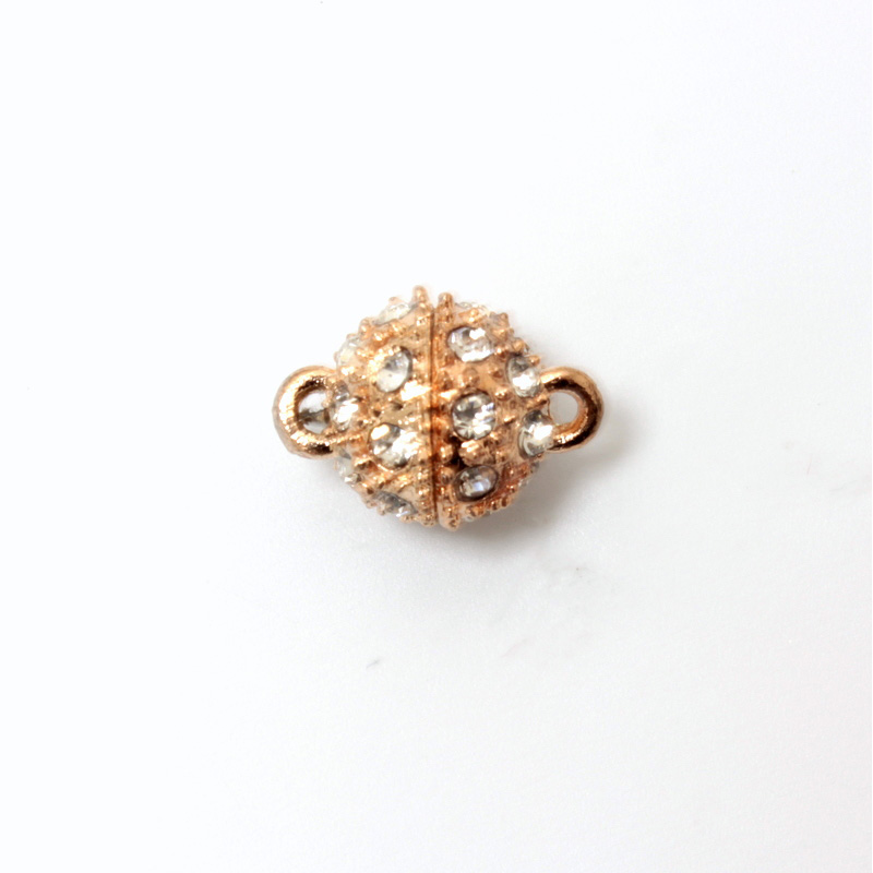 An elegantly designed rhinestone clasp set with crystal chatons and finished in rose gold. The strength and reliability of our magnetic clasps will never let you down. Due to the nature of these clasps, they should not be used in children's jewelry.