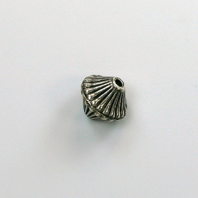 Metalized Plastic Bead - Ribbed Bicone 09x8MM ANT SILVER