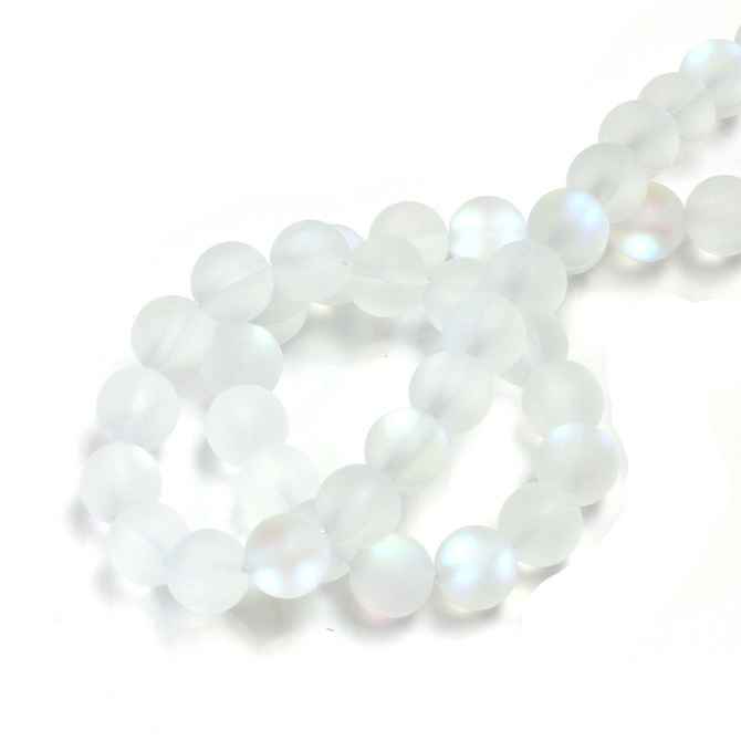 Mystic Sea Quartz Bead - Smooth Round 08MM MATTED SEA CRYSTAL with AB Coating