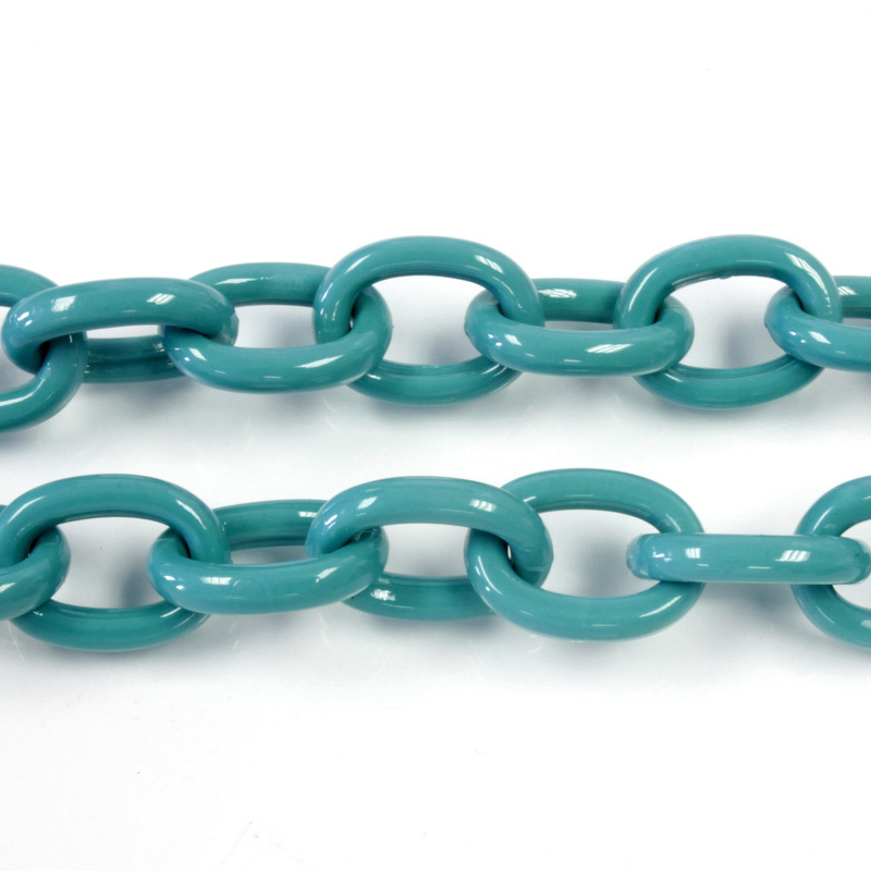 These plastic link chains come in one meter lengths. The 3.4mm thick links have an outside dimension of 18x13mm. Stocked in high quality acrylic colors, these chains are lightweight and can be used in all sorts of designs.