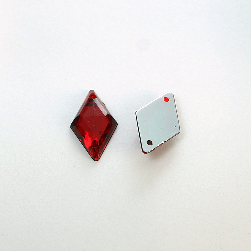 These acrylic sew-on jewel stones have a faceted top with two holes and a silver foiled reflective back. Also known as sew-on rhinestones, these come in a wide range of colors, shapes and sizes.