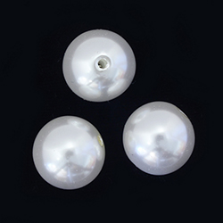 Pearl coated on a plastic base. These faux pearl beads are sold loose, but are ready to be strung in your jewelry, craft and clothing designs. Our plastic pearl cabochons are a good quality and value when compared to our line of glass based pearls, but always keep in mind that imitation pearl coatings are a surface coating that can be affected by certain cosmetics or chemicals. As with most imitation pearl items, colors may vary slightly from lot to lot.