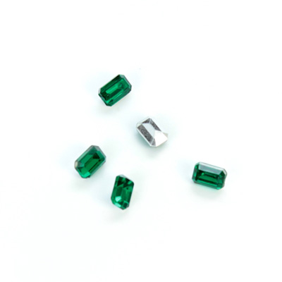 Plastic Point Back Foiled Stone - Cushion Octagon 06x4MM EMERALD