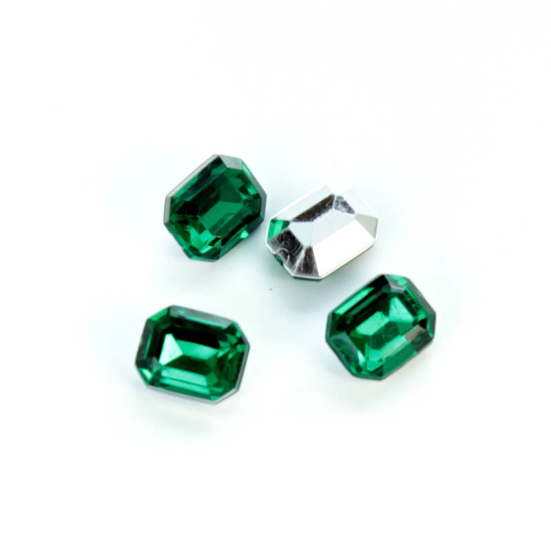 Plastic Point Back Foiled Stone - Cushion Octagon 10x8MM EMERALD