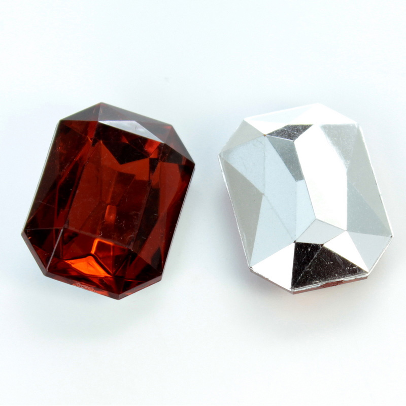 Our faceted acrylic point back stones are a great light weight, lead-free alternative to machine-cut crystal fancy stones. These top-quality lucite gemstones come in a variety of transparent jewel colors, with a silver foil backing. Be careful to use the correct glue when setting these stones. Glues which work well with glass stones may eat through or compromise the foil on plastic stones.