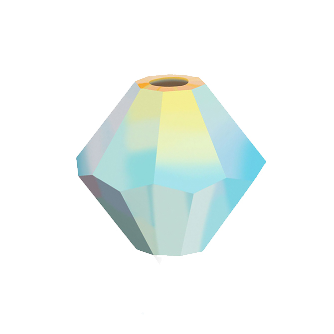The Preciosa Crystal machine-cut faceted bicone bead (called a rondell by Preciosa) is a symmetrical double cone shape. A beader's staple, it's available in many colors and mixes well with other bead shapes.