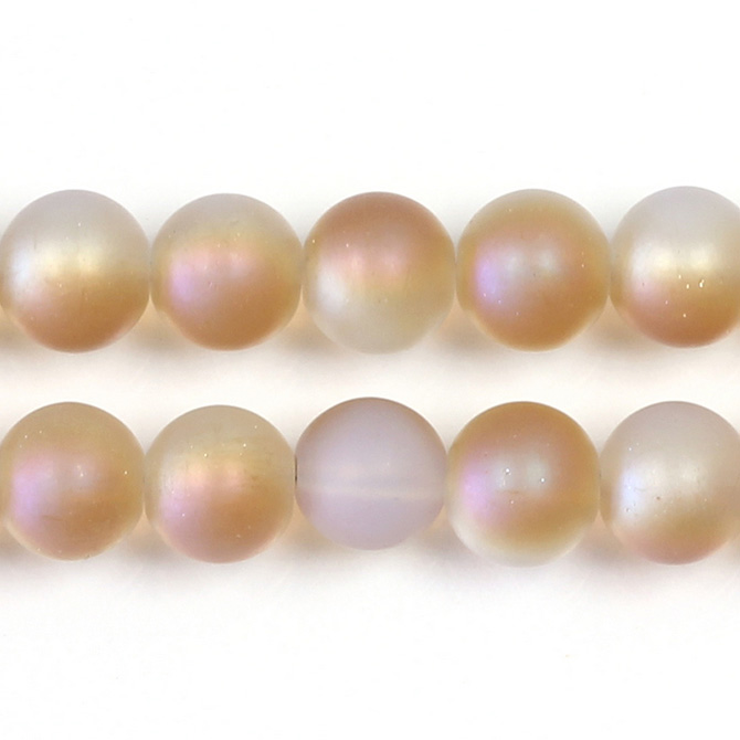 Made in China, these smooth glass beads have a Matt and coated finish. Please note that small imperfections may occur as part of the manufacturing process and size, shape and color may vary slightly from lot to lot.