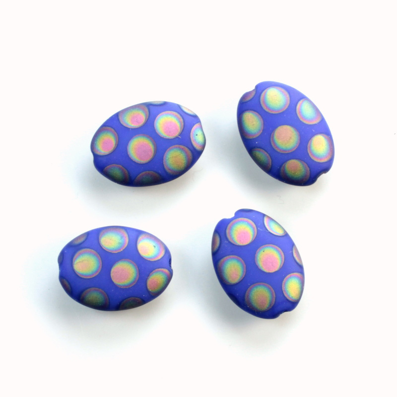 Pressed Glass Peacock Bead - Oval 14x10MM MATTE BLUE
