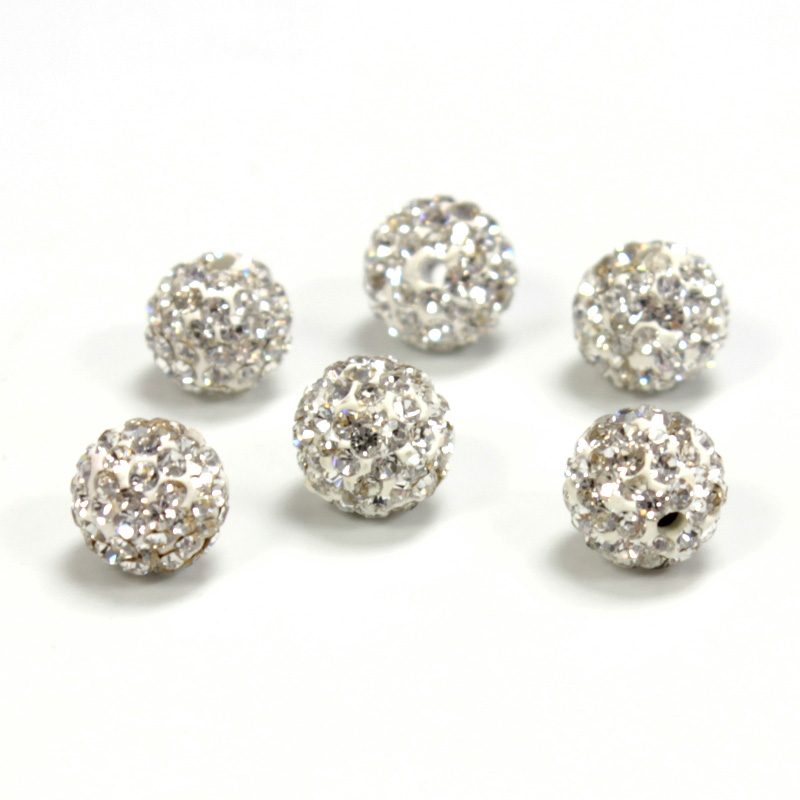 These rhinestone pave beads have glittering crystal stones set onto a metal base. Use these to add sparkle to shamballa bracelets and other designs. Note: These beads contain lead in levels above 100ppm and should not be used in products intended for children.