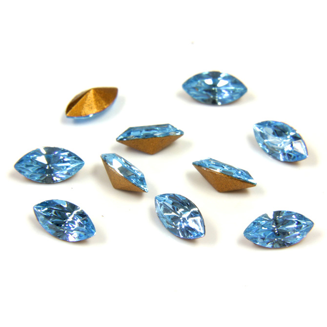 Swarovski Crystal Foiled Point Back Tin Table Cut (TTC) Fancy Stone - Navette 06x3MM AQUAMARINE