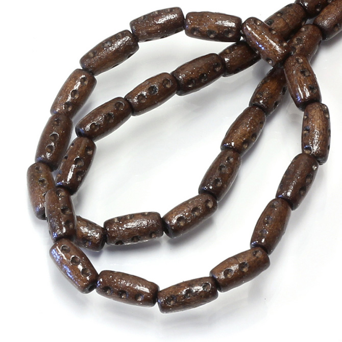 Wood Bead - Rounded Cylinder 12x6MM Dark Brown Dyed, With Dark Burnt Hole Dots, LACQUERED